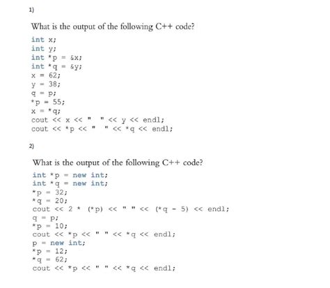 1. What is the output of the following code ? int a =3; int b =2; b=a++; cout<<++b;