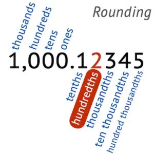 Round-off (pembulatan) untuk 0.4 ke bawah adalah diturunkan. Pembulatan untuk 0.5 dan ke atasnya adalah dinaikkan. Jadi pembulatan 0.5 adalah 1